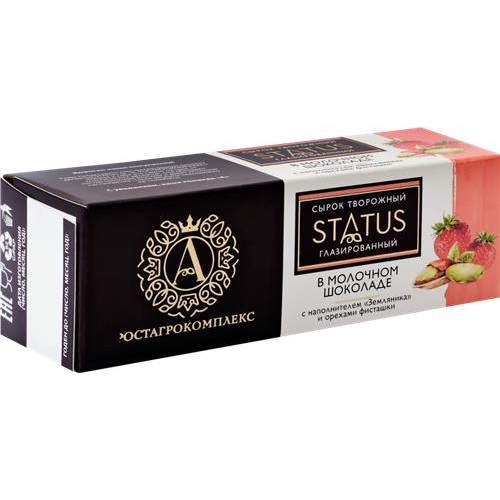 Сырок творожный глазированный А.РОСТАГРОКОМПЛЕКС Status Земляника, фисташки в молочном шоколаде 26%, без змж, 50г в магазинах Лента