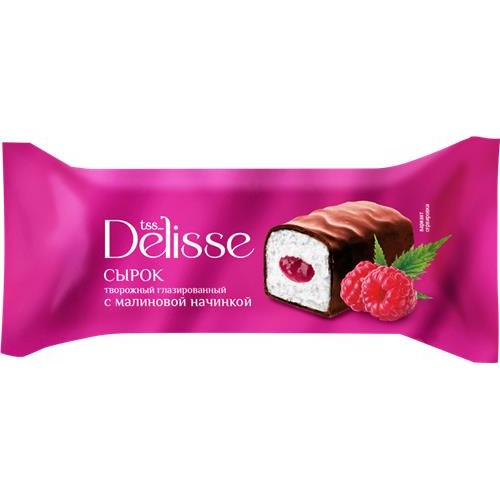 Сырок творожный глазированный DELISSE с малиновой начинкой 26%, без змж, 40г в магазинах Лента