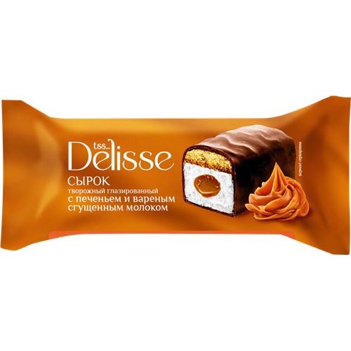 Сырок творожный глазированный DELISSE с вареной сгущенкой и печеньем 26%, без змж, 40г в магазинах Лента