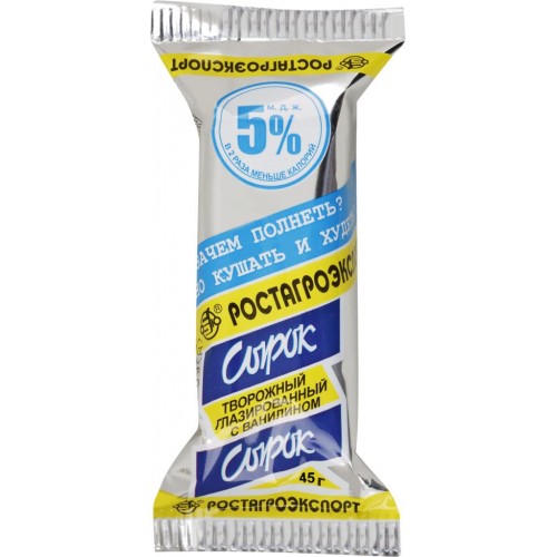 Сырок творожный глазированный РОСТАГРОЭКСПОРТ Ваниль Диетический 5%, без змж, 45г в магазинах Лента