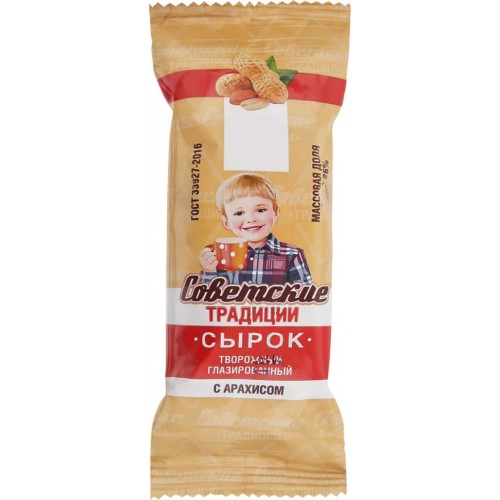 Сырок творожный глазированный СОВЕТСКИЕ ТРАДИЦИИ с арахисом 26%, без змж, 45г в магазинах Лента