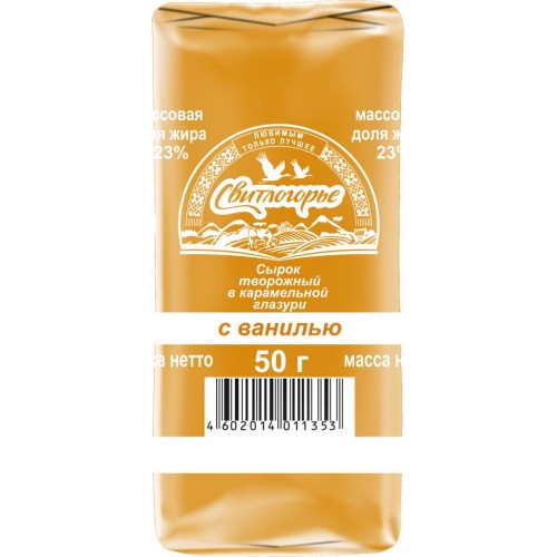 Сырок творожный глазированный СВИТЛОГОРЬЕ Ванильный в карамельной глазури 23%, без змж, 50г в магазинах Лента