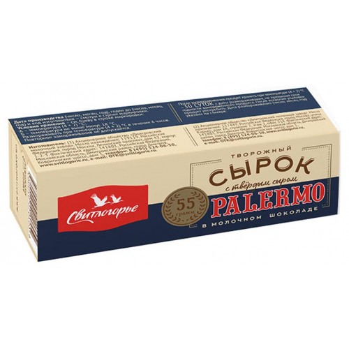 Сырок творожный Свитлогорье глазированный с твердым сыром Palermo в молочном шоколаде 23%, 55 г (kastd) в магазинах Ашан