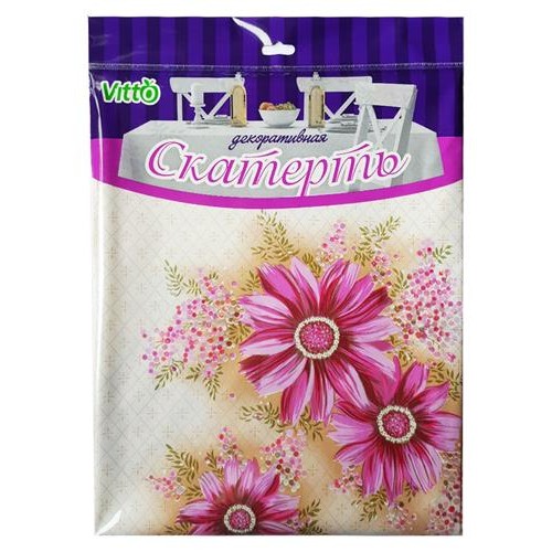 Скатерть Vitto розовые цыеты на бежевом ПВХ, 130х180 см (kastd) в магазинах Ашан