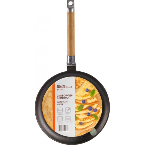Сковорода блинная HOMECLUB 24см, чугун, съемная ручка в магазинах Лента