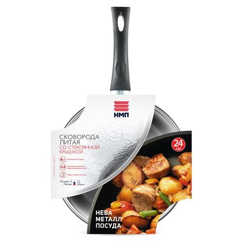 Сковорода Нева Металл Посуда литая с крышкой, 24 см (kastd) в магазинах Ашан