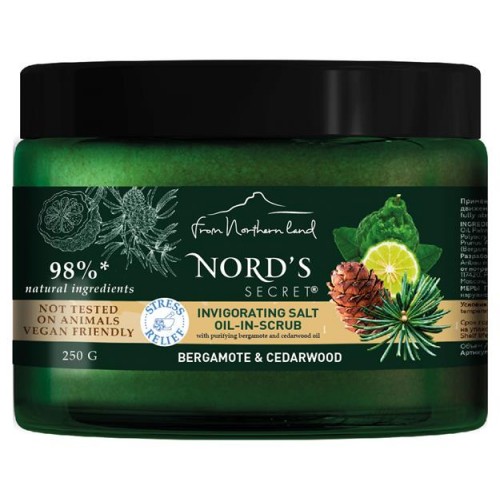 Скраб для тела соляной Nord's Secret Бергамот и кедр c эфирным маслом тонизирующий, 250 мл (kastd) в магазинах Ашан