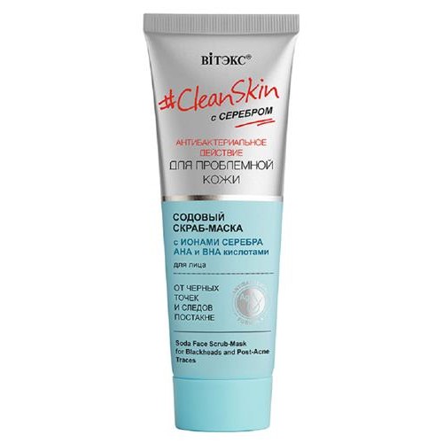 Скраб-маска для лица Витэкс #Clean Skin с серебром для проблемной кожи Содовый от черных точек и следов постакне, 75 мл (kastd) в магазинах Ашан