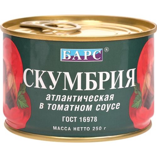 Скумбрия БАРС Атлантическая в томатном соусе, 250г в магазинах Лента