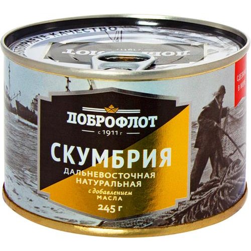 Скумбрия Доброфлот дальневосточная натуральная в масле, 245г в магазинах Перекресток