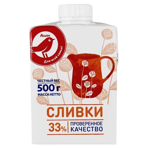 Сливки АШАН Красная птица 33% БЗМЖ, 500 мл (kastd) в магазинах Ашан