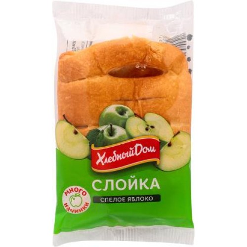 Попробуйте этот товар от Хлебного дома и насладитесь вкусом свежей слойки с яблочной начинкой!