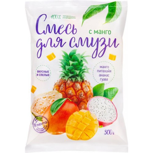 Смесь для смузи с манго от ЛЕНТА - это прекрасный выбор для любителей вкусных и полезных десертов. В состав смеси входят отборные и спелые фрукты: манго, питахайя, ананас и гуава, выращенные в экологически чистых условиях.