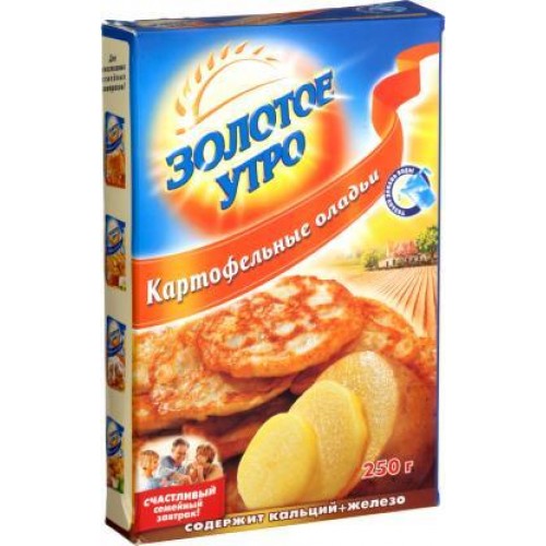 Смесь для выпечки «Золотое утро» Картофельные оладьи – это продукт массой 250 г, предназначенный для быстрого и легкого приготовления популярного блюда – драников или дерунов. Также их называют картофельными оладьями.