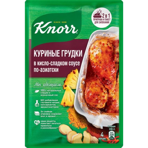 Смесь KNORR На второе Куриные грудки в кисло-сладком соусе по-азиатски, 28г в магазинах Лента