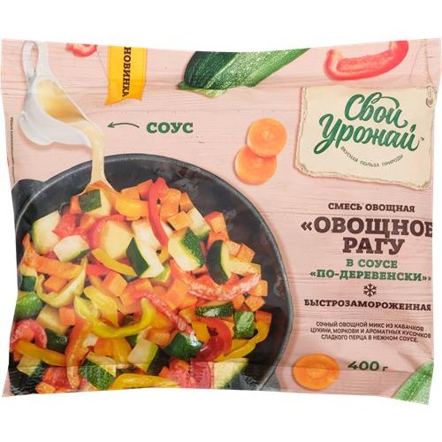 Овощная смесь СВОЙ УРОЖАЙ Овощное рагу в соусе по-деревенски станет отличным выбором для тех, кому важно качество и польза продуктов. Готовьте с удовольствием и заботьтесь о своем здоровье вместе с магазином Лента!