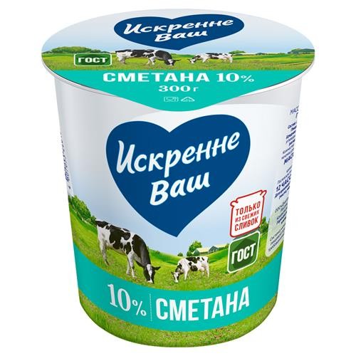 Сметана Искренне Ваш 10% БЗМЖ, 300 г (kastd) в магазинах Ашан