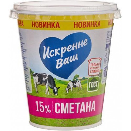 Сметана Искренне ваш 15% 300г в магазинах Магнит