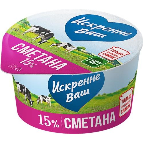 Сметана ИСКРЕННЕ ВАШ 15%, без змж, 180г в магазинах Лента