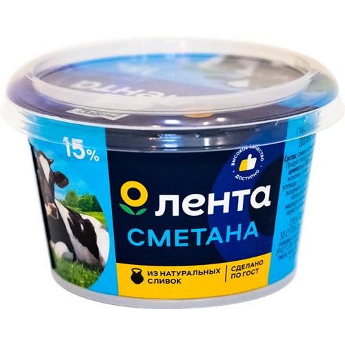 Сметана ЛЕНТА 15% ГОСТ, без змж, 180г в магазинах Лента
