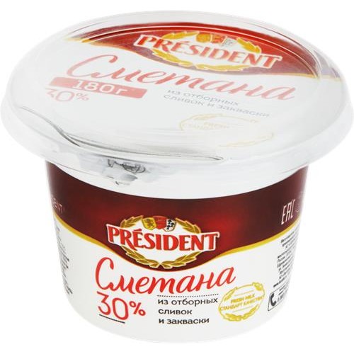 Сметана PRESIDENT 30%, без змж, 180г в магазинах Лента