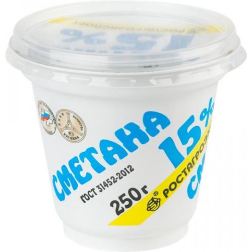 Сметана РОСТАГРОЭКСПОРТ 15%, без змж, 250г в магазинах Лента