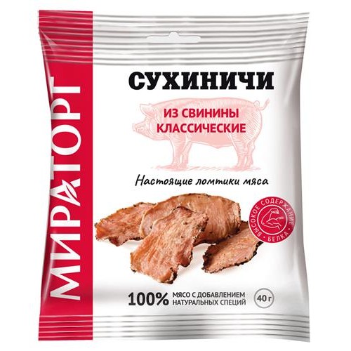 Снек Мираторг Сухиничи из свинины, 40 г (kastd) в магазинах Ашан
