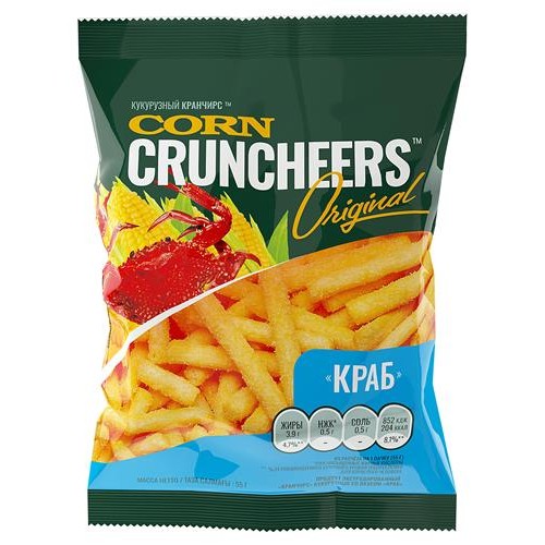 Снеки CRUNCHEERS кукурузные со вкусом краба, 55 г (kastd) в магазинах Ашан