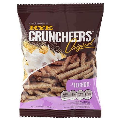Снеки CRUNCHEERS ржаные со вкусом чеснока, 55 г (kastd) в магазинах Ашан