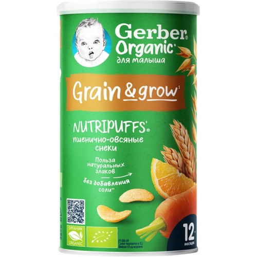 Снеки пшенично-овсяные GERBER Organic морковь-апельсин, с 12 месяцев, 35г в магазинах Лента
