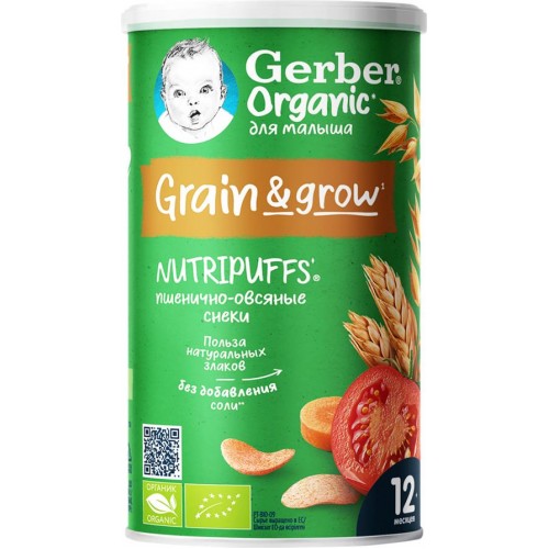 Снеки пшенично-овсяные GERBER Organic томат и морковь, 35г в магазинах Лента