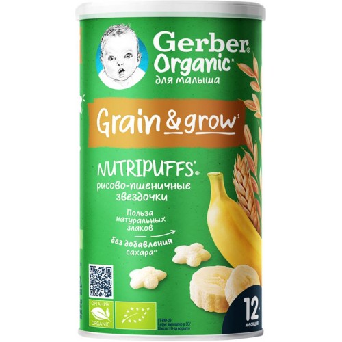 Снеки рисово-пшеничные GERBER Organic Звездочки банан, с 12 месяцев, 35г в магазинах Лента
