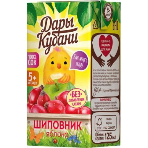 Сок Дары Кубани Яблочно-шиповниковый 125мл в магазинах Магнит