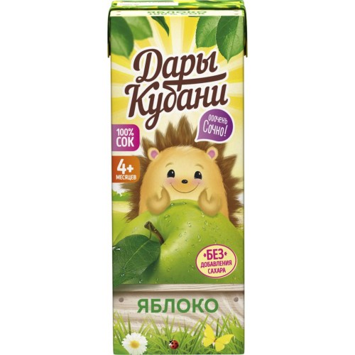 Сок ДАРЫ КУБАНИ Яблоко осветленный, с 4 месяцев, 200мл в магазинах Лента
