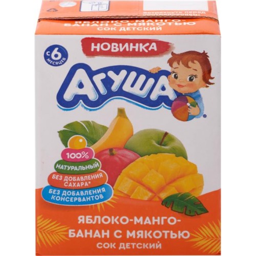 Сок фруктовый АГУША Яблоко, манго и банан с мякотью, с 6 месяцев, 200мл в магазинах Лента