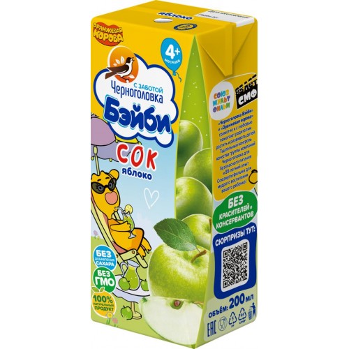 Сок фруктовый ЧЕРНОГОЛОВКА БЭЙБИ Яблоко, осветленный, с 4 месяцев, 200мл в магазинах Лента