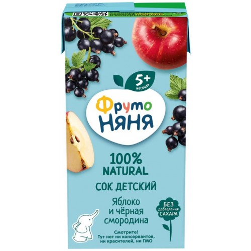 Сок ФРУТОНЯНЯ Яблоко, черная смородина осветленный, с 5 месяцев, 200мл в магазинах Лента