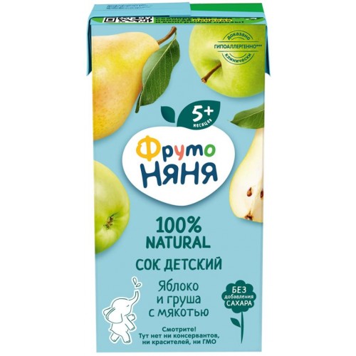 Сок ФРУТОНЯНЯ Яблоко, груша с мякотью, с 5 месяцев, 200мл в магазинах Лента