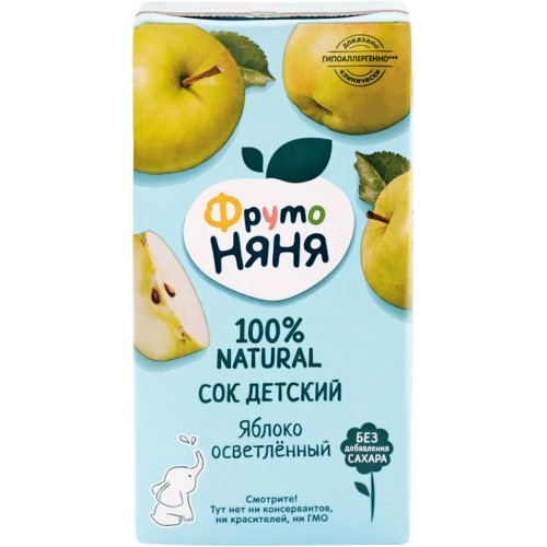 Сок ФрутоНяня Яблоко - это 100% натуральный и безопасный продукт для малышей от 3-х лет. Изготовленный из отборных и спелых яблок, сок не содержит сахара и искусственных добавок.