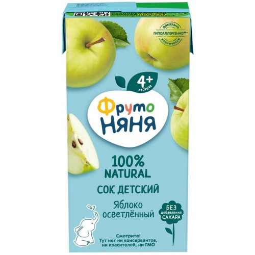 Сок ФРУТОНЯНЯ Яблоко осветленный без сахара, с 4 месяцев, 200мл в магазинах Лента
