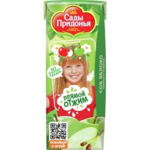 Сок САДЫ ПРИДОНЬЯ яблочный прямого отжима, 0.2л в магазинах Авоська