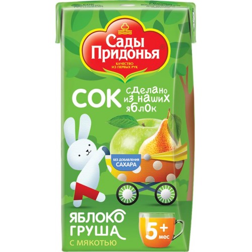 Сок САДЫ ПРИДОНЬЯ Яблоко, груша с мякотью, с 5 месяцев, 125мл в магазинах Лента