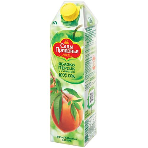 Сок Сады Придонья яблоко-персик с мякотью для детского питания, 1л в магазинах Перекресток