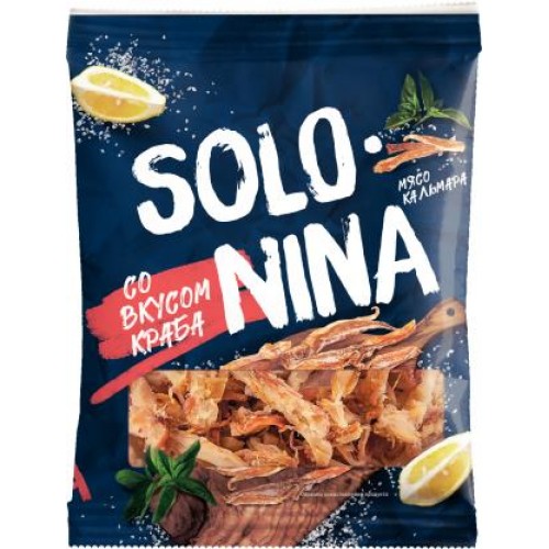 SOLONINA Кальмар полос с/вкус краба вял 70г п/уп в магазинах Магнит