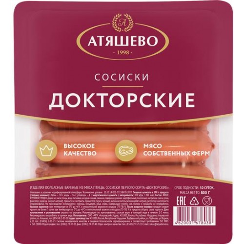 Сосиски АТЯШЕВО Докторские, 500г в магазинах Лента
