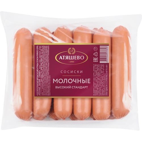 Сосиски АТЯШЕВО Молочные Высокий стандарт, 600г в магазинах Лента