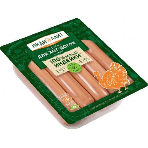 Сосиски Индилайт для хот-догов из индейки 380г в магазинах Магнит