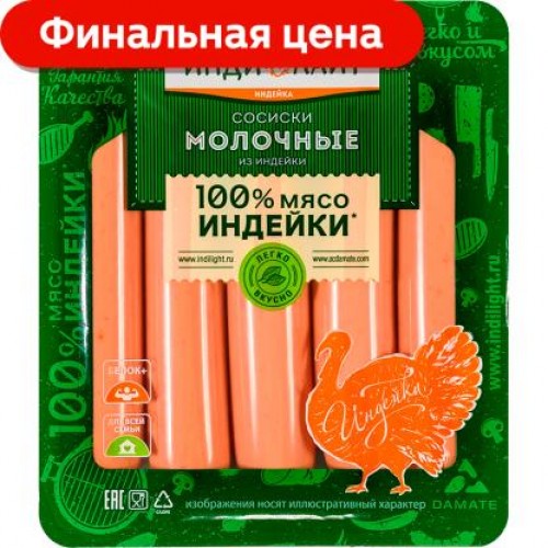 Сосиски Индилайт Молочные из индейки 275г в магазинах Магнит