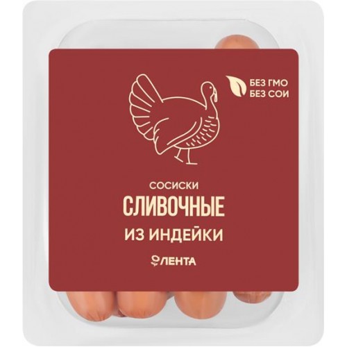 Сосиски из индейки ЛЕНТА Сливочные, 440г в магазинах Лента