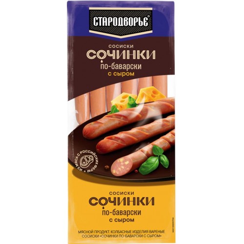 Сосиски СТАРОДВОРЬЕ Сочинки по-баварски с сыром, 840г в магазинах Лента